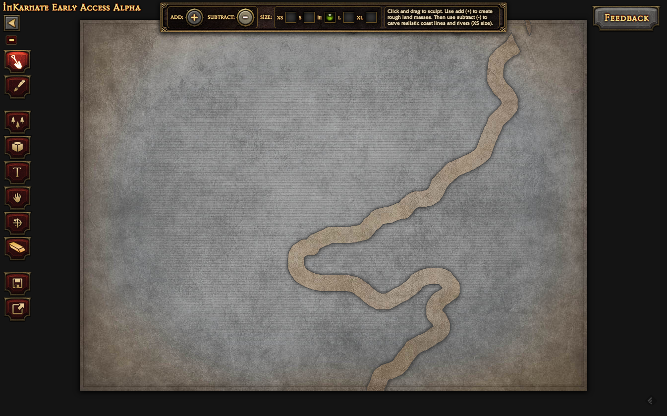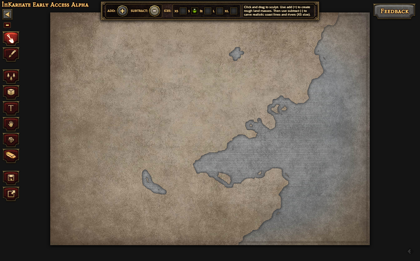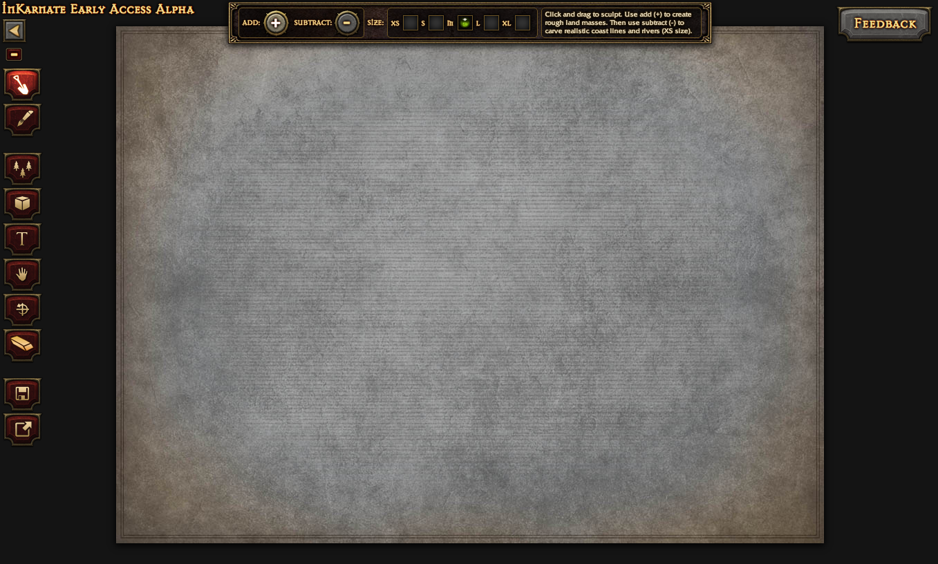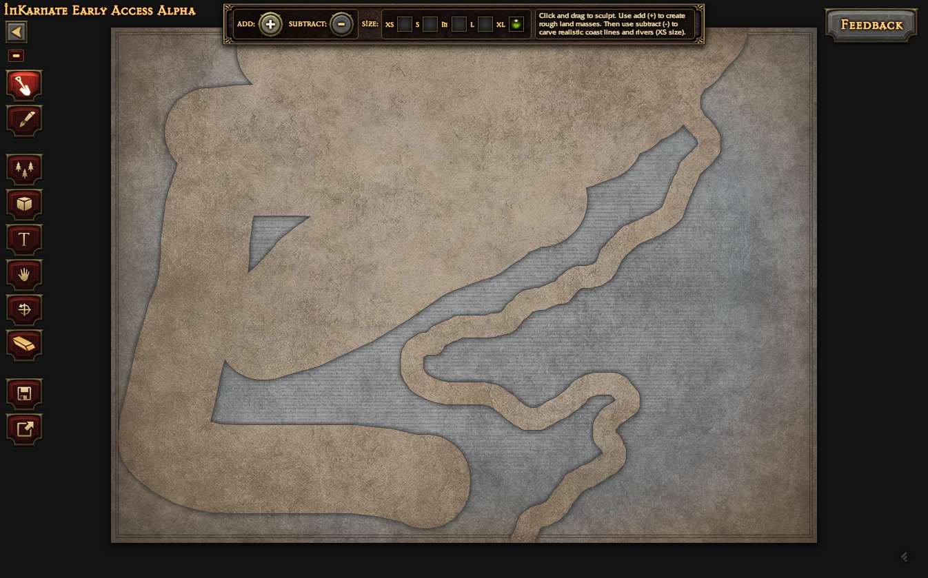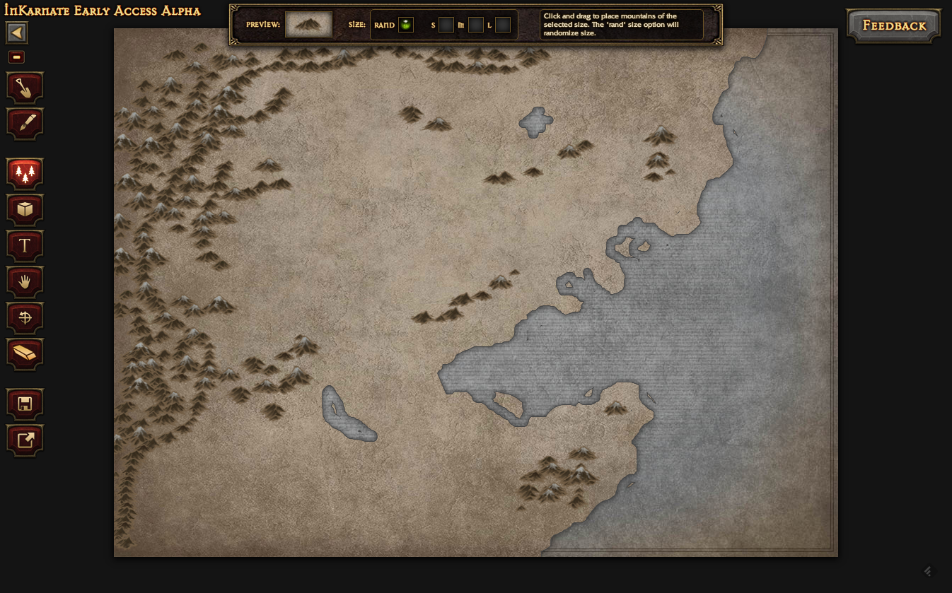 しばらく前に目をつけた InKarnate というTRPG用のマップ作成ツール(本当はキャラクタ作成などもサポートする総合支援ツールという構想みたい)が登録ユーザ向けにリリースされましたので、早速使ってみました! なお、現在は限定されたユーザにのみ公開されているアルファ版です。
