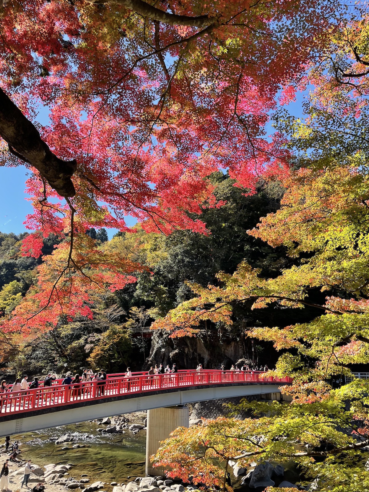 (だいたい)毎年恒例の香嵐渓に行ってきました。香嵐渓というのは、愛知県で最も有名な紅葉の名所の一つです。有名かつ他にあまりないため、多くの人がここを訪れますが、主要な道路は限られ交通機関もないためひじょーに道が混みます。そのため、車では行かずに自転車で行きます。今の時期(11/6)、香嵐渓の紅葉はまだ始まったところで少し早いんですが、今月はなかなか忙しく、他に行けそうな日がないし天気も良かったので。