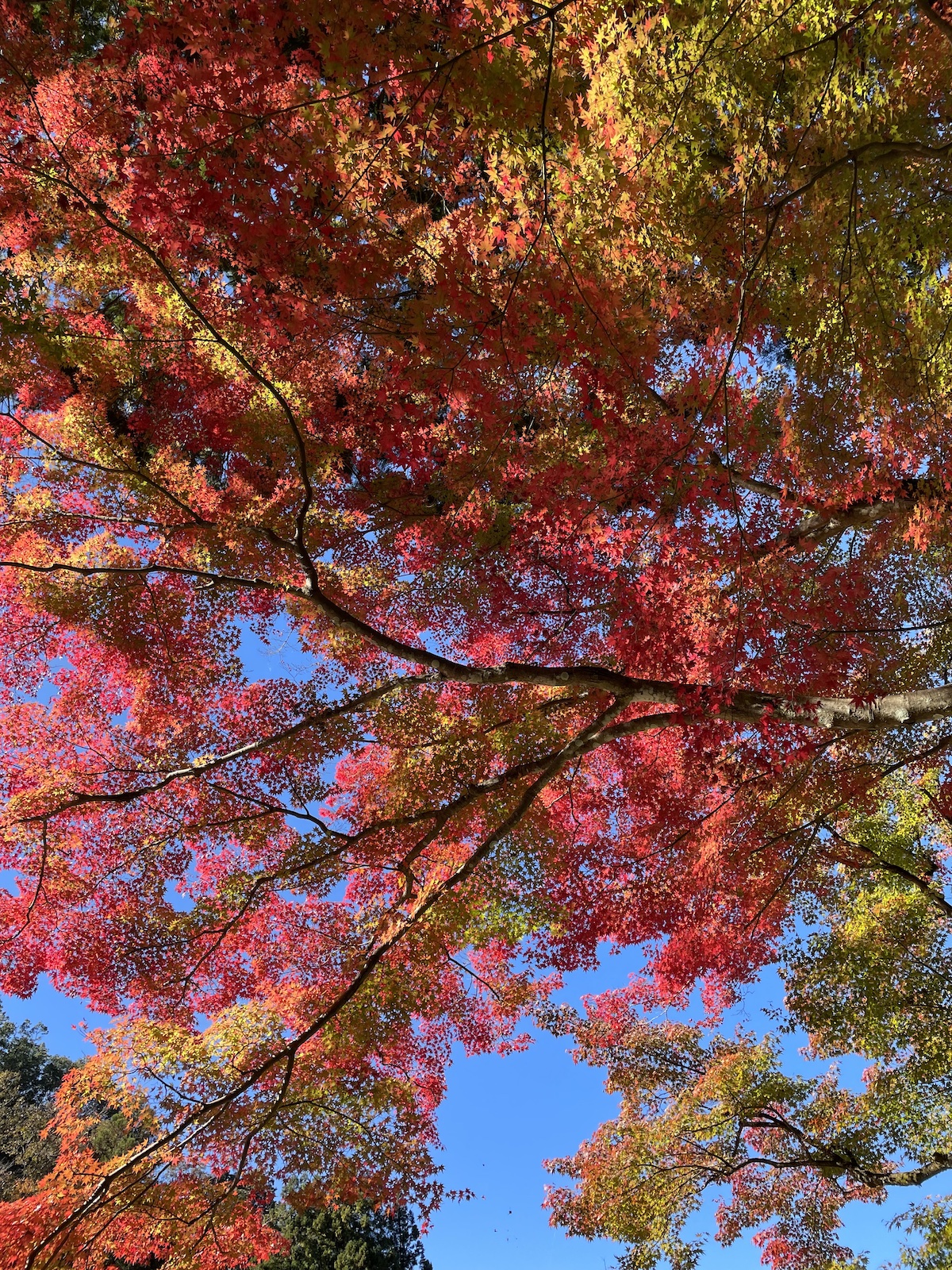 紅葉の方は、予想通りまだ少し早く、緑の葉が半分以上でした。個人的には緑の葉も、それが黄色や赤に色づいた葉と混在している様子も好きです。また全体的には早い状態ですが、一部の木は真っ赤に色づいていて楽しめました。